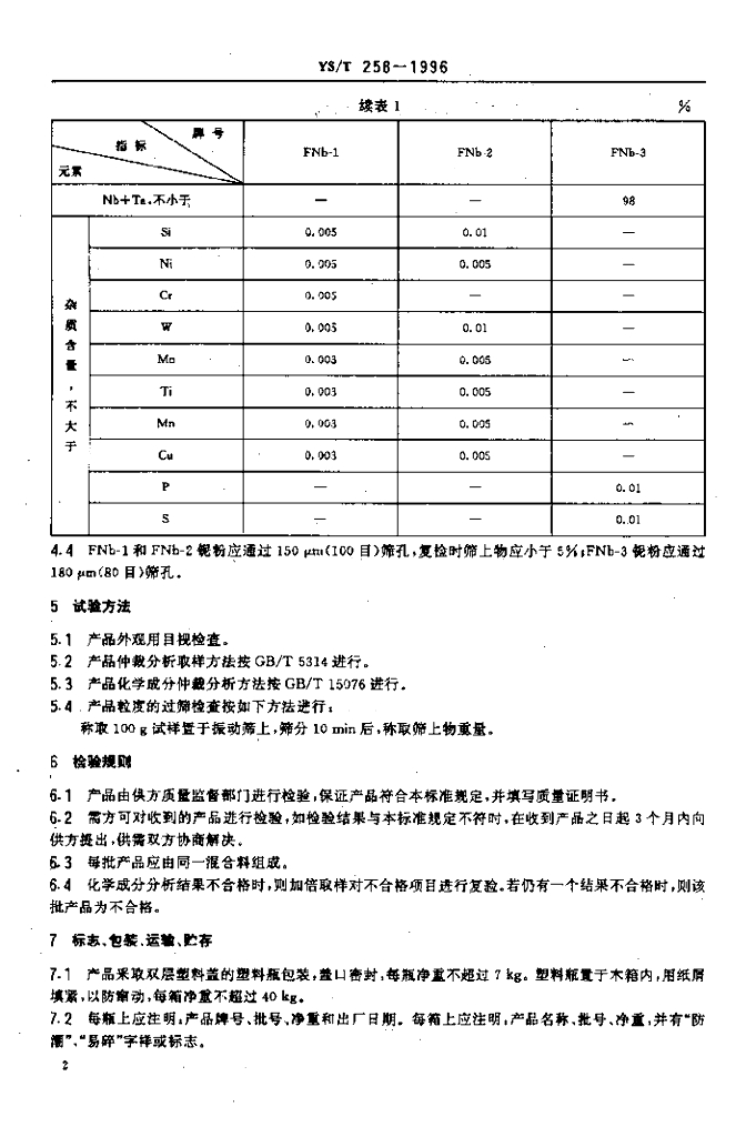 YS/T 258-1996 冶金用铌粉