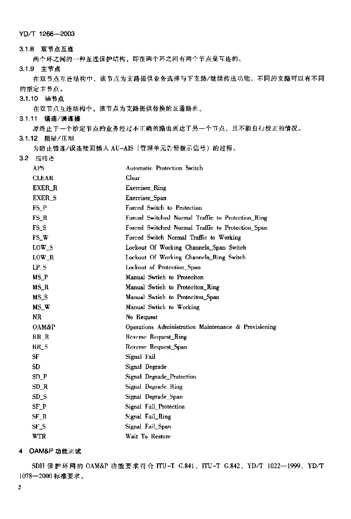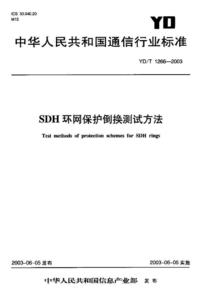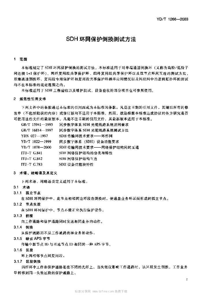 YD/T 1266-2003 SDH 环网保护倒换测试方法