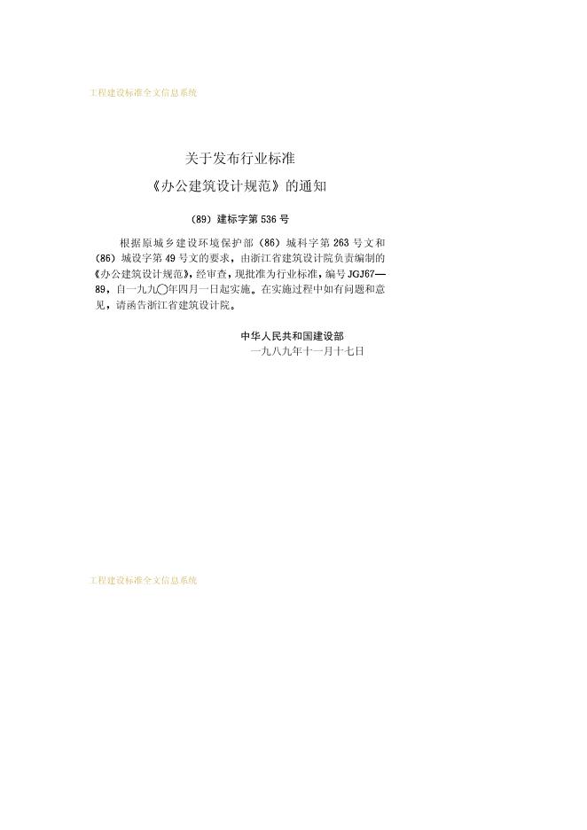 JGJ 67-1989 办公建筑设计规范