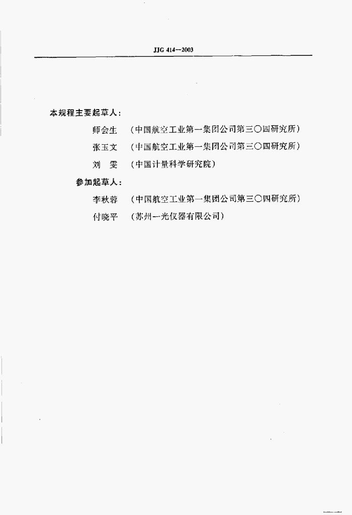 师会生(中国航空工业第一集团公司第三○四研究所)、张玉文(中国航空工业第一集团公司第三○四研究所)、刘雯(中国计量科学研究院)、李秋蓉(中国航空工业第一集团公司第三○四研究所)、付晓平(苏州一光仪器有限公司)