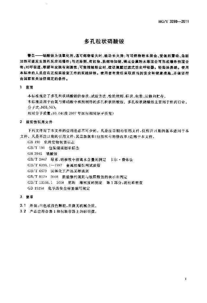 HG/T 3280-2011 代替 HG 3280-1990 多孔粒状硝酸铵