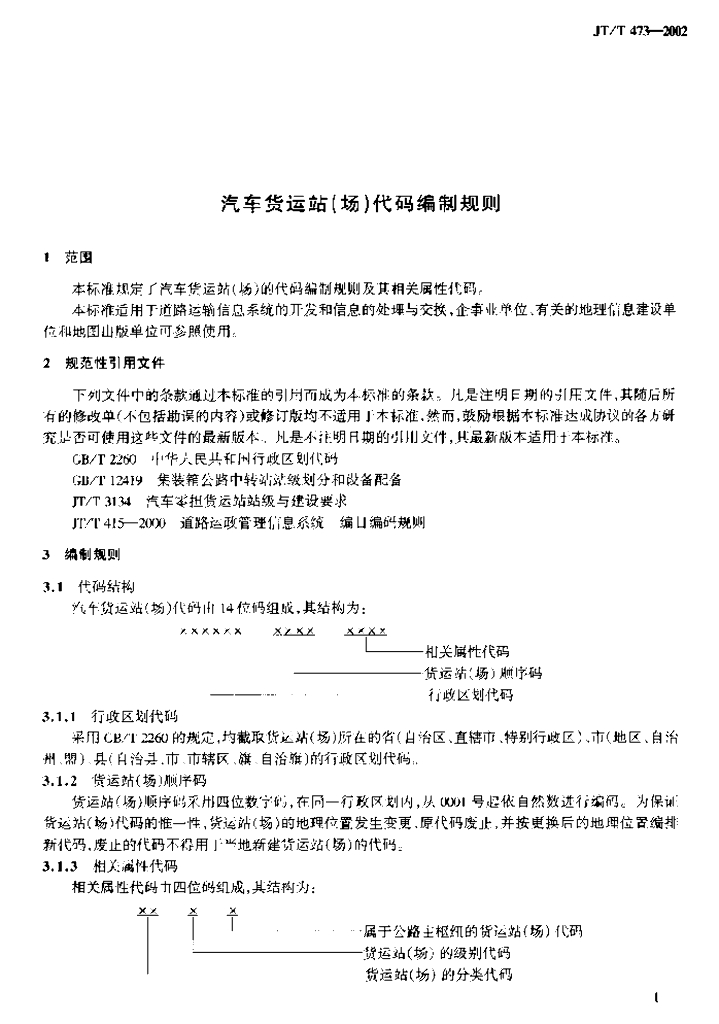 JT/T 473-2002 汽车货运站(场)代码编制规则