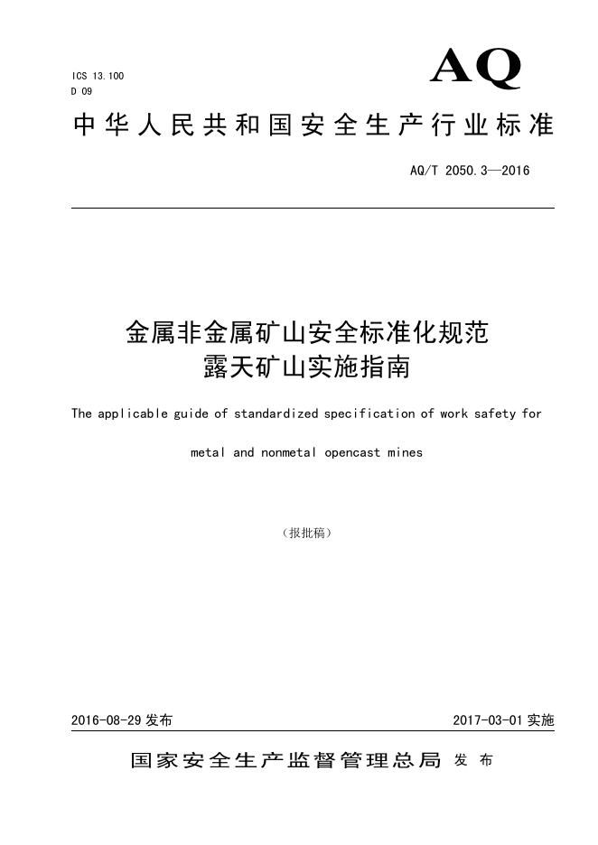 AQ/T 2050.3-2016 金属非金属矿山安全标准化规范 露天矿山实施指南