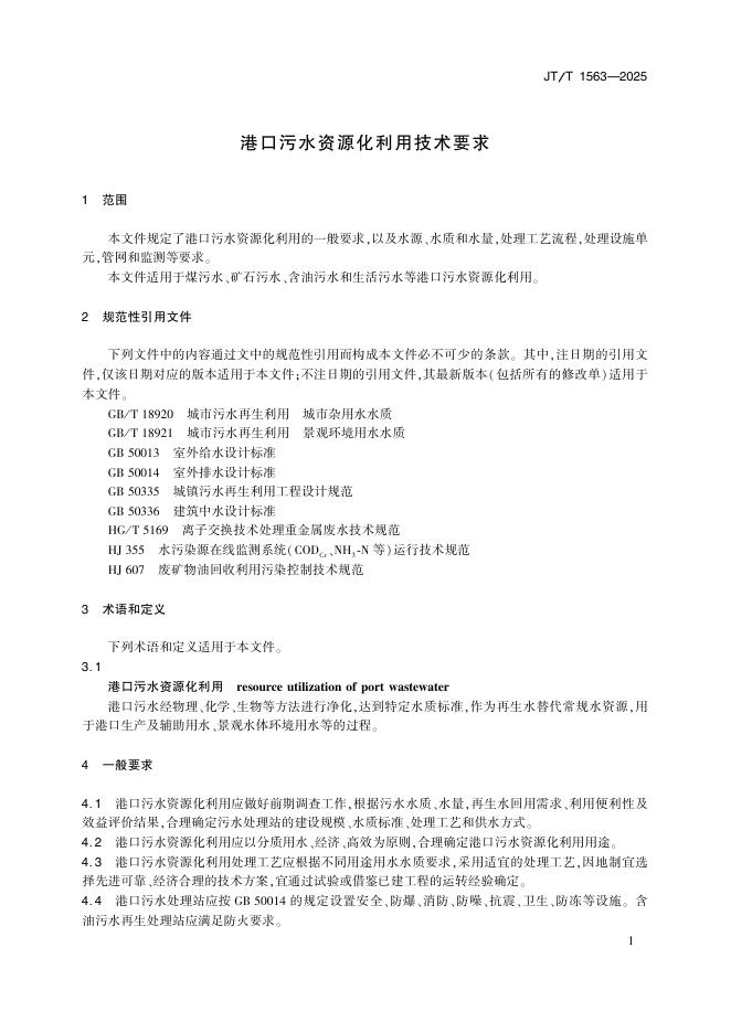 JT/T 1563-2025 港口污水资源化利用技术要求