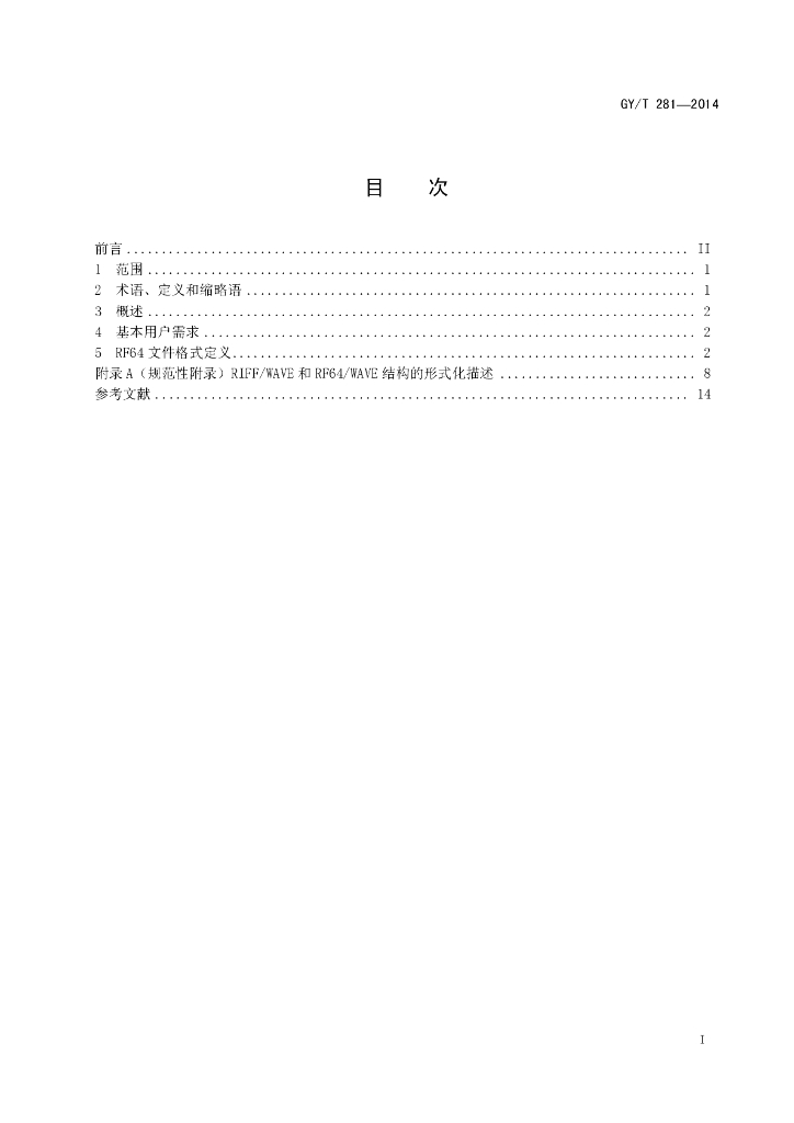 GY/T 281-2014 音频扩展文件格式MBWF/RF64