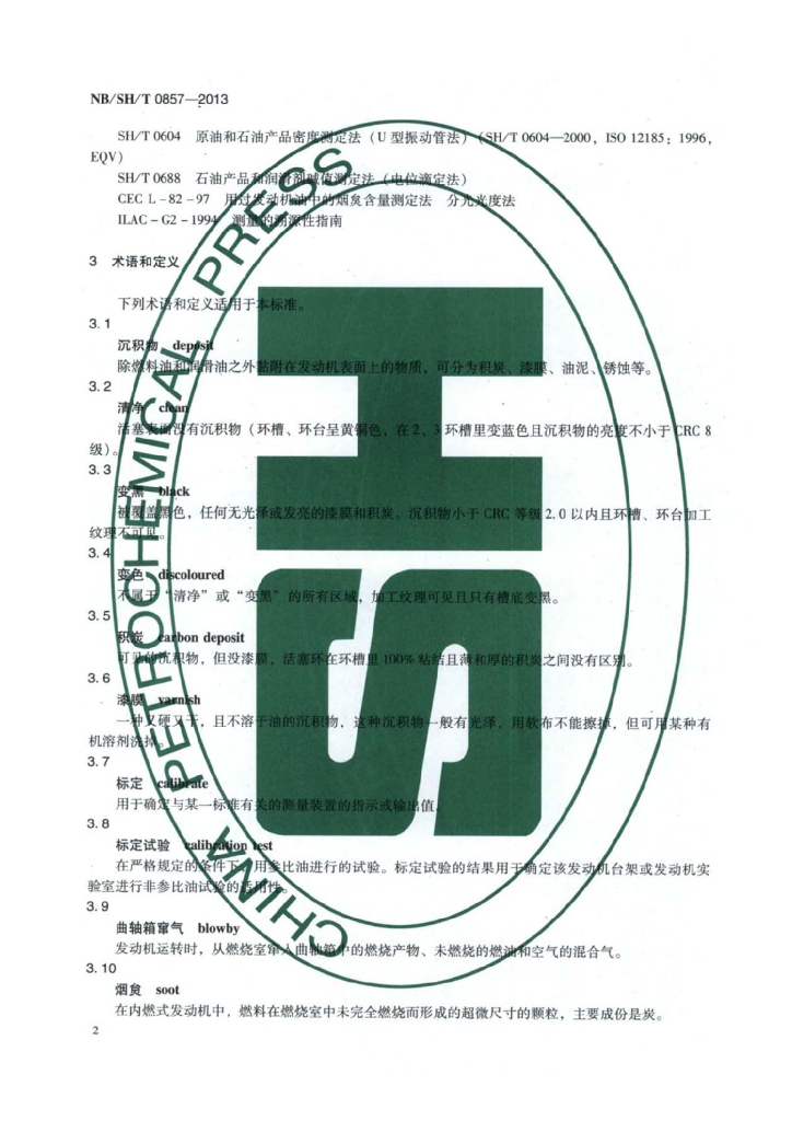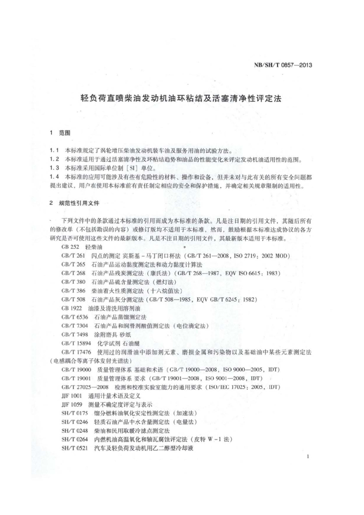 NB/SH/T 0857-2013 轻负荷直喷柴油发动机油环粘结及活塞清净性评定法