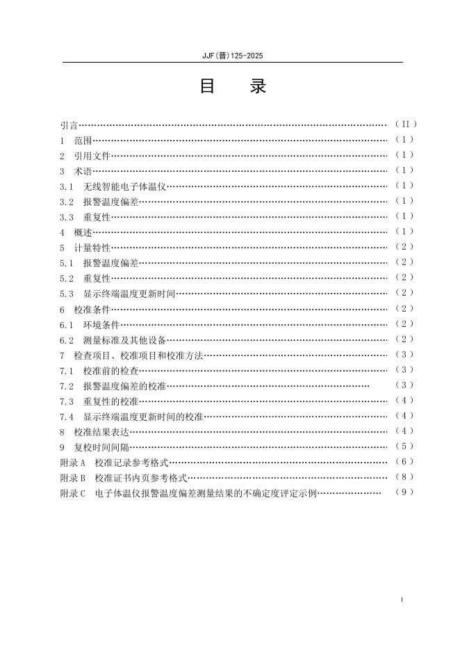 JJF(晋)125-2025 无线智能电子体温仪校准规范