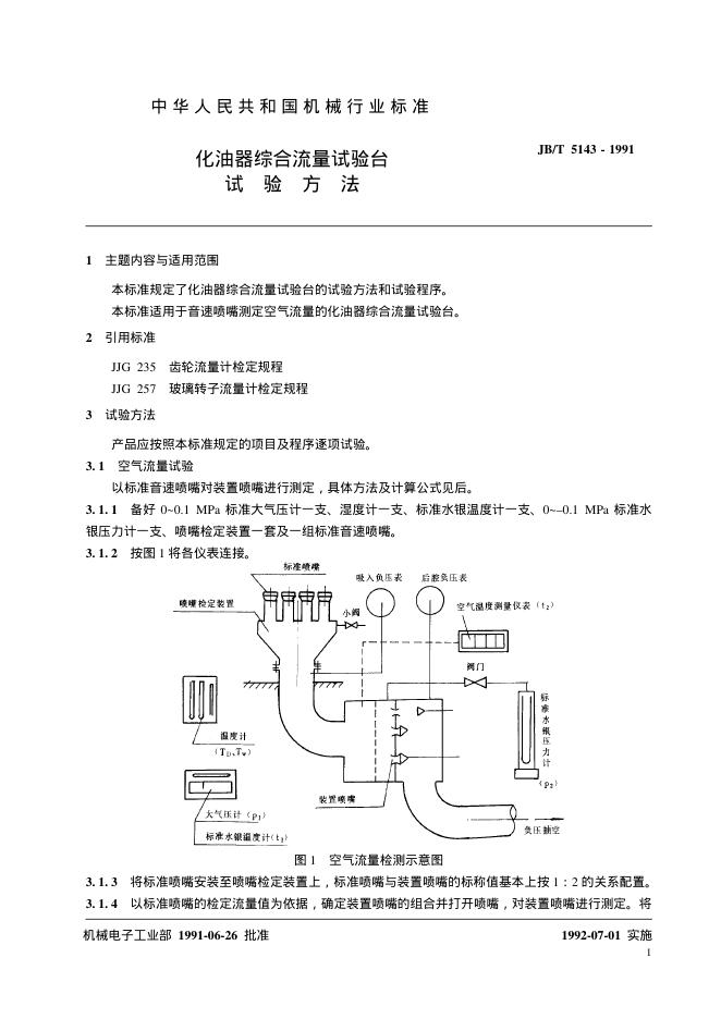 JB/T 5143-1991 化油器综合流量试验台 试验方法