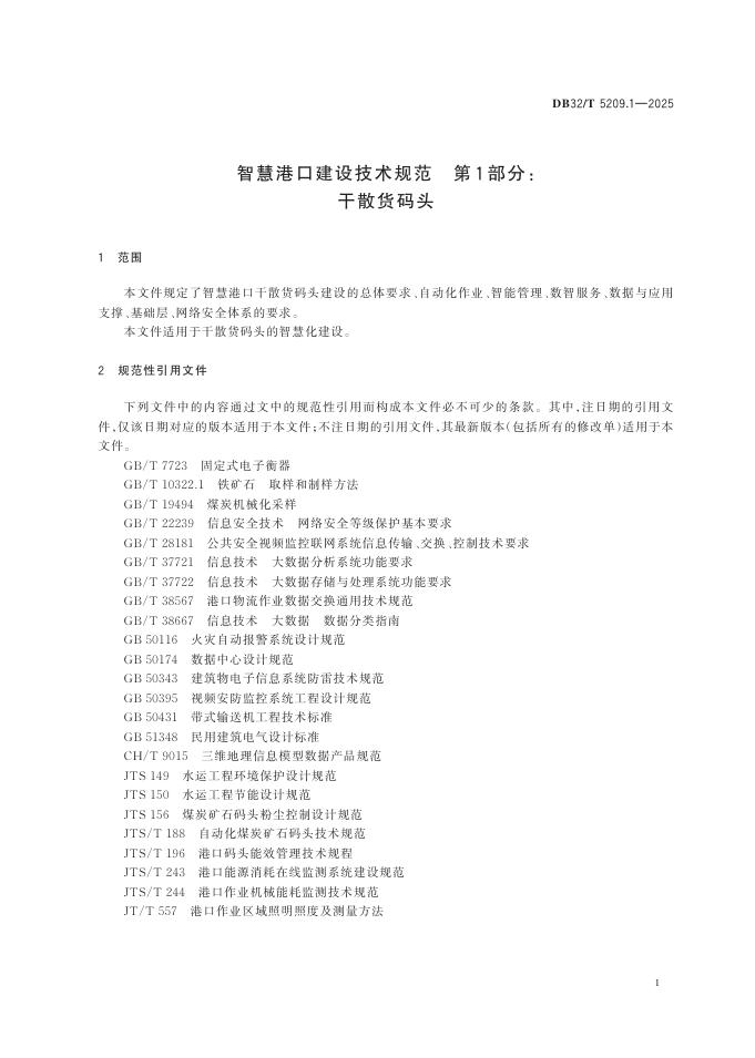DB32/T 5209.1-2025 智慧港口建设技术规范 第1部分:干散货码头
