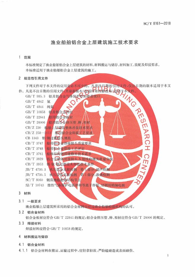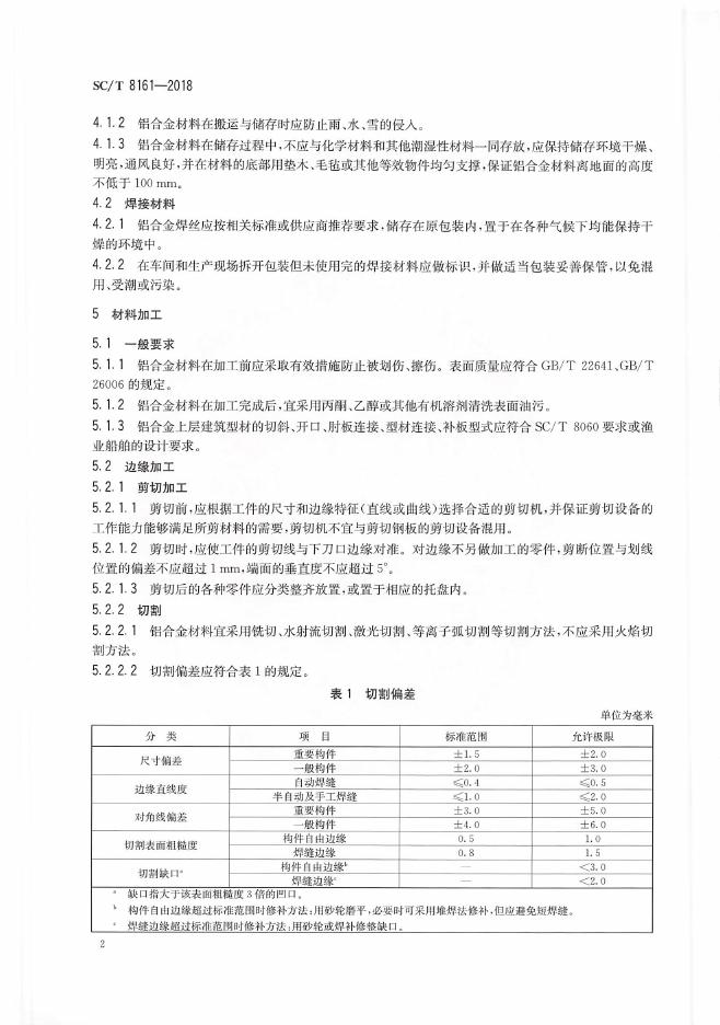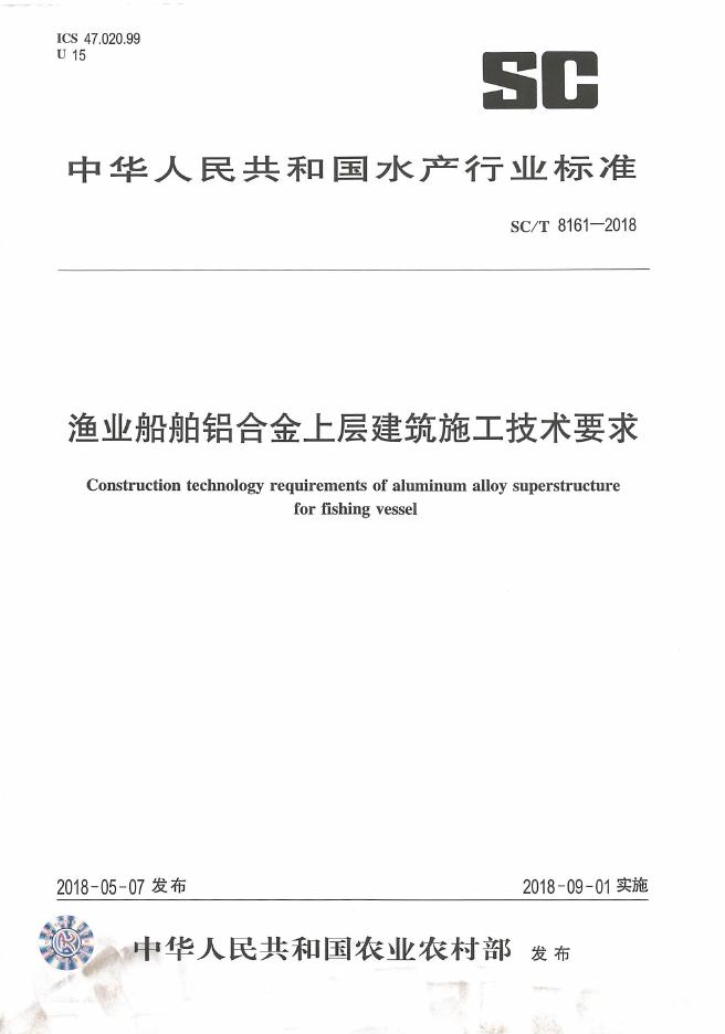 SC/T 8161-2018 渔业船舶铝合金上层建筑施工技术要求