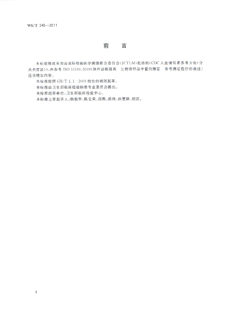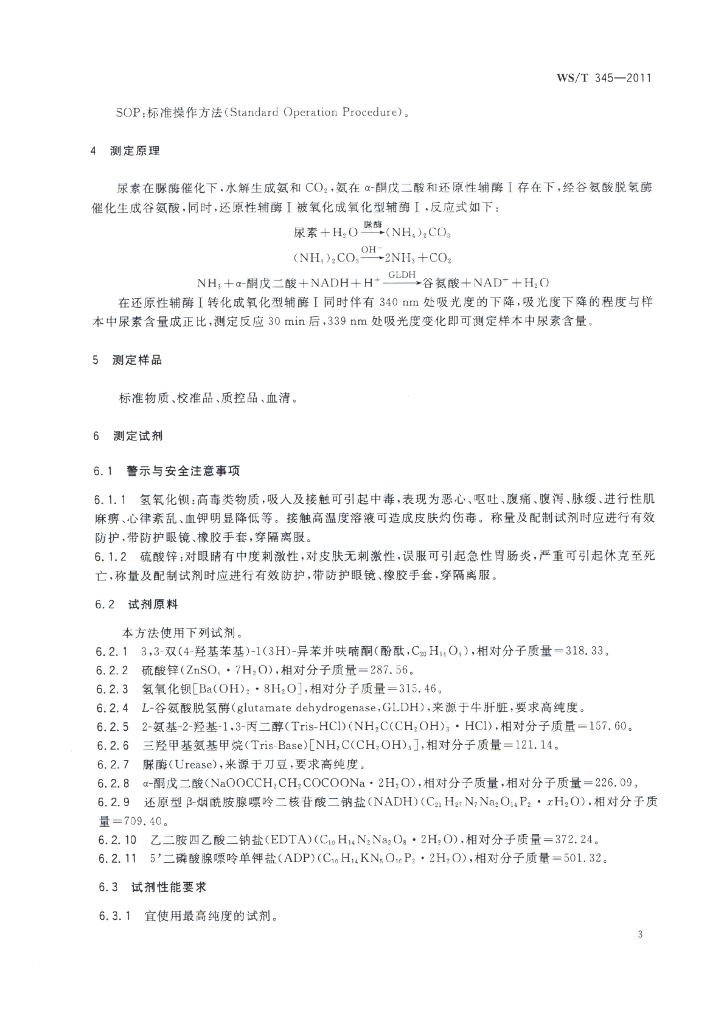 WS/T 345-2011 血清尿素测定参考方法