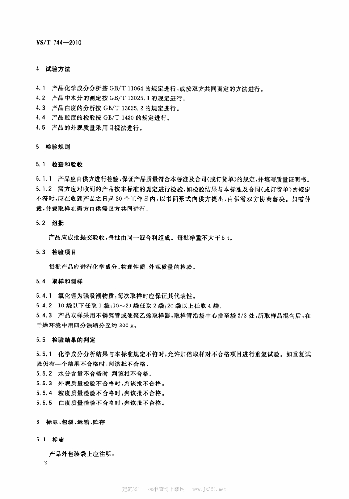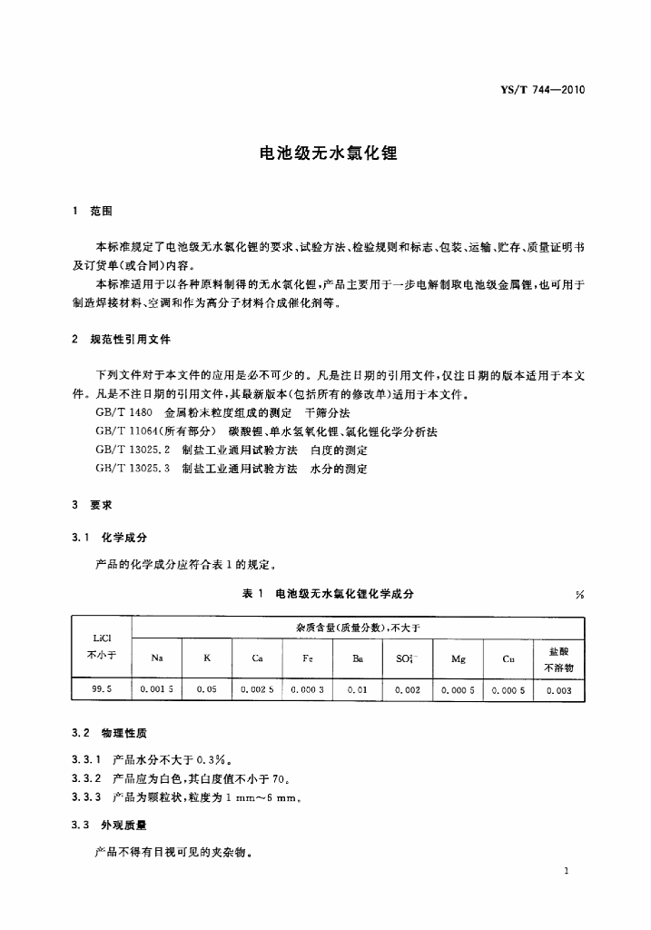 YS/T 744-2010 电池级无水氯化锂