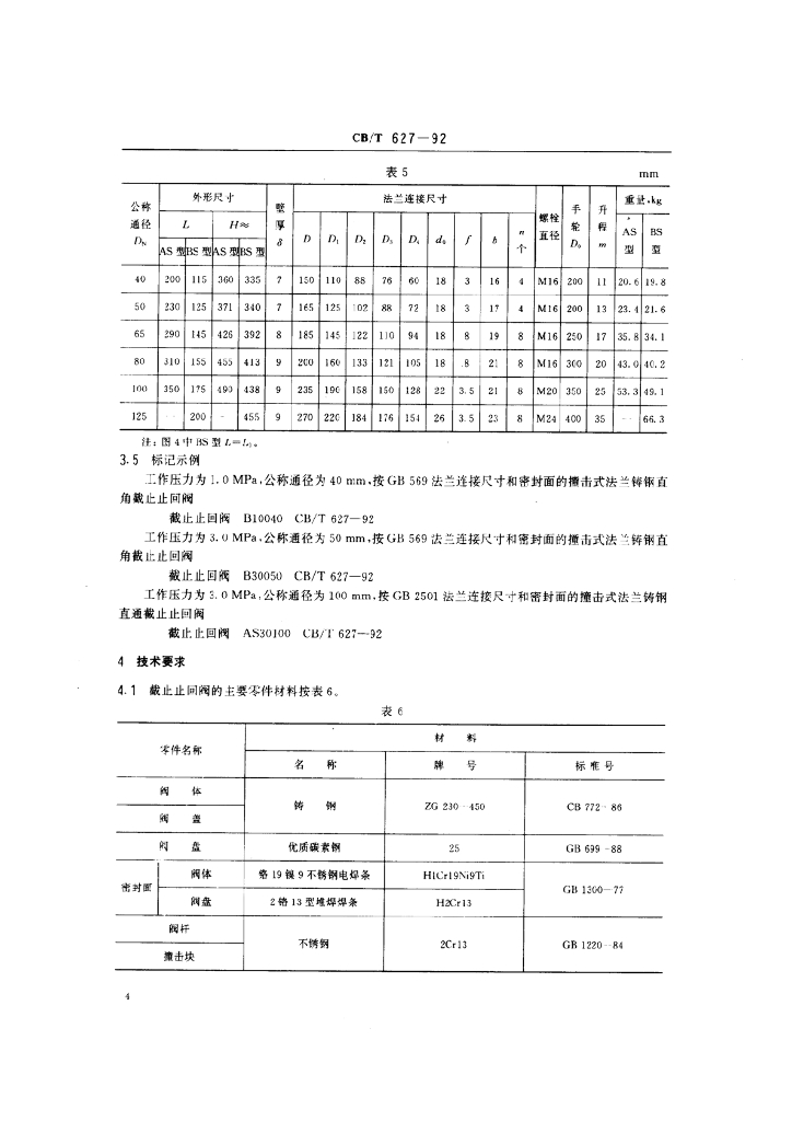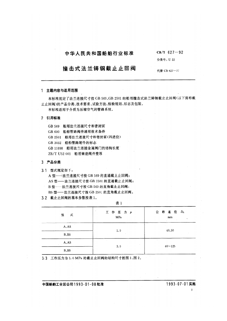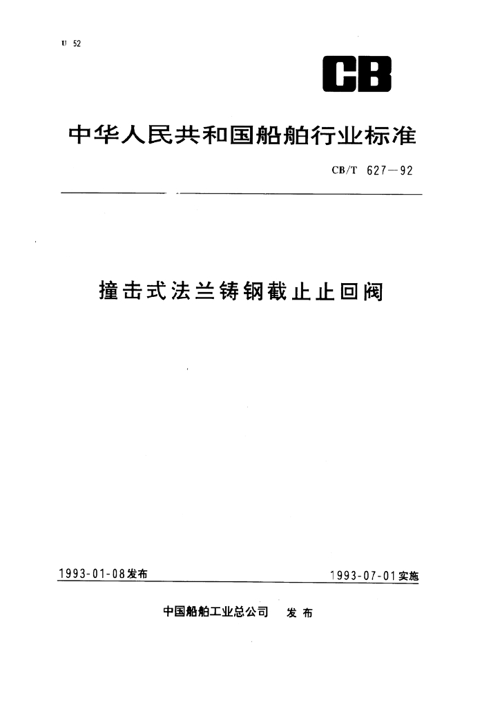 CB/T 627-1992 撞击式法兰铸钢截止止回阀
