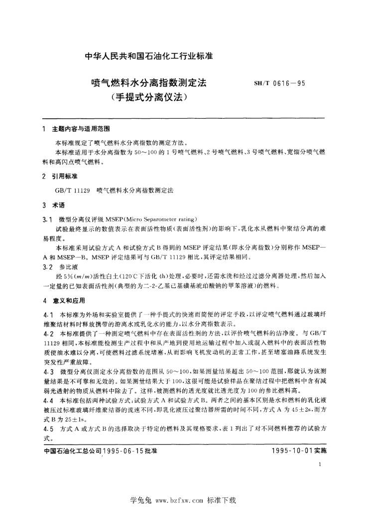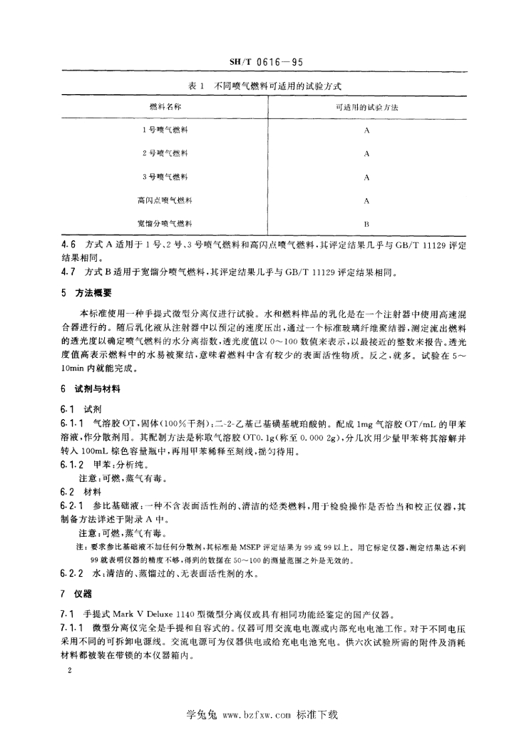 SH/T 0616-1995 喷气燃料水分离指数测定法(手提式分离仪法)
