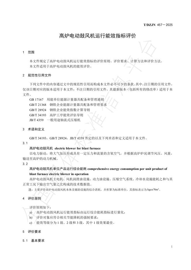 T/DZJN 457-2025 高炉电动鼓风机运行能效指标评价