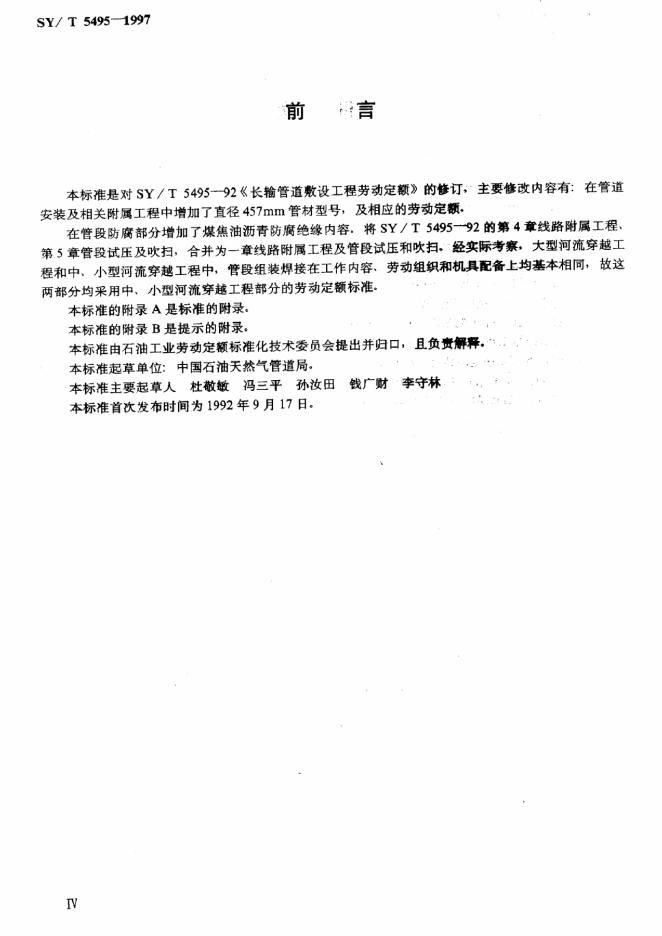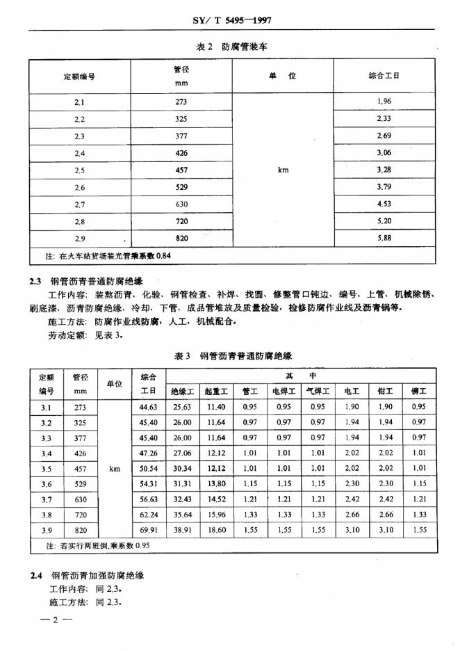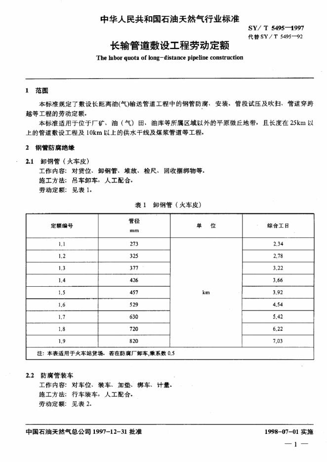 SY/T 5495-1992 长输管道敷设工程劳动定额