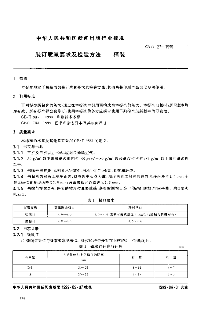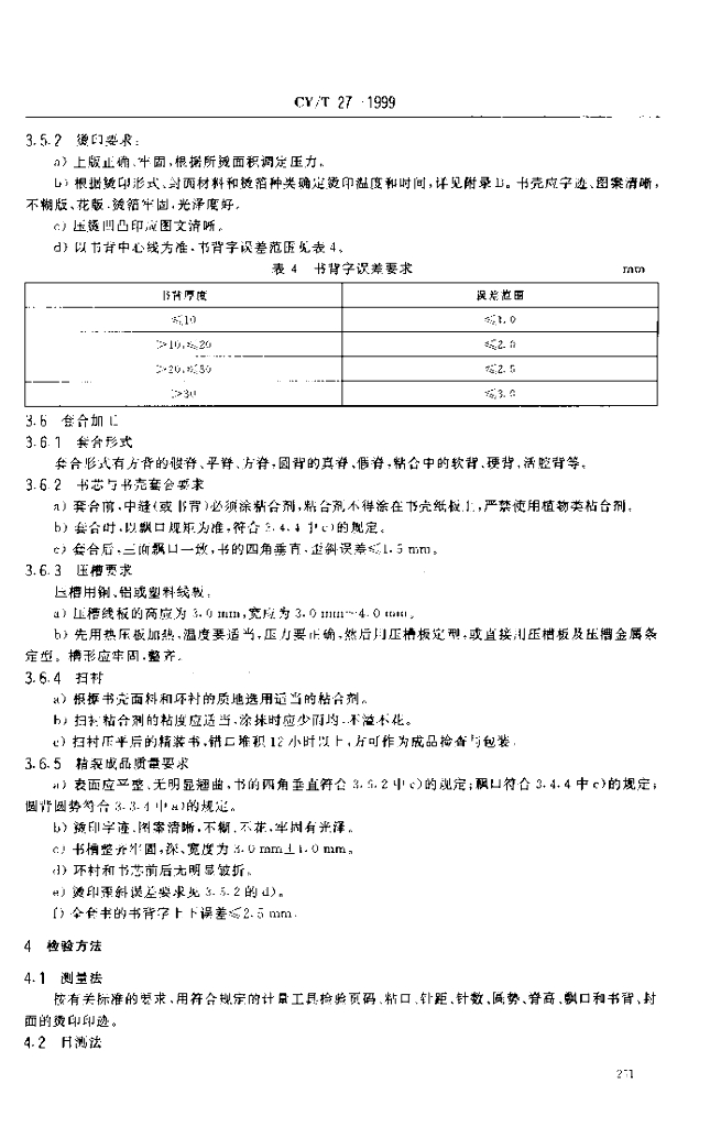 CY/T 27-1999 装订质量要求及检验方法—精装