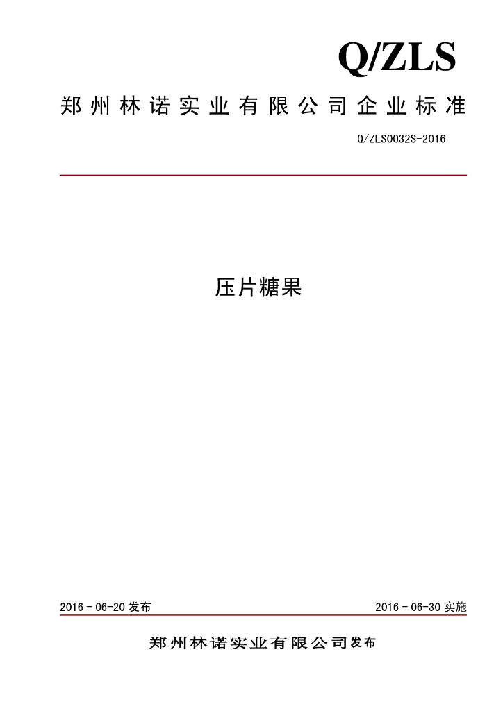 Q/ZLS 0032S-2016 郑州林诺实业有限公司 压片糖果