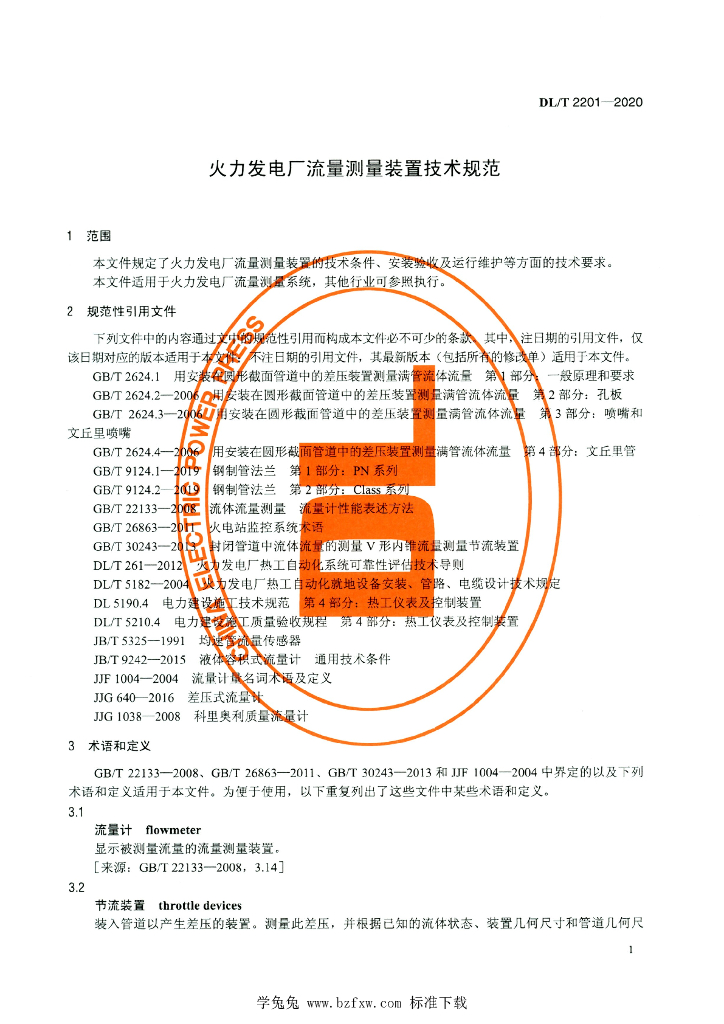 DL/T 2201-2020 火力发电厂流量测量装置技术规范
