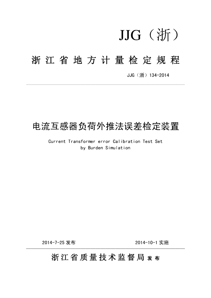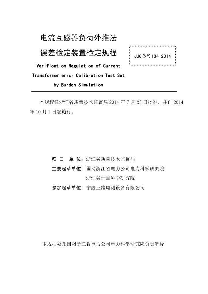 JJG(浙)134-2014 电流互感器负荷外推法误差检定装置