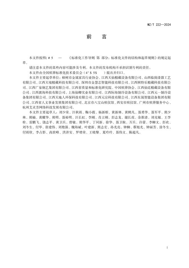 樟树市金属家具行业协会、江西天仙精藏设备有限公司、山西临猗漆器工艺有限公司、江西天境精藏科技有限公司、深圳市金慧芯智能科技有限公司、江西顾特乐精藏科技有限公司、江西广泉钢艺集团有限公司、江西省质量和标准化研究院、中国殡葬协会、江西仙廷精藏设备有限公司、江西渡海科技有限公司、上海仙卿实业有限公司、江西际海制冷设备有限公司、江西元一制冷设备集团有限公司、江西天地人环保科技有限公司、江西元宗科技有限公司、江西东晟智能设备集团有限公司、江西省人文事业发展集团有限公司、北京市八宝山殡仪馆、西安市殡仪馆、广州市殡葬服