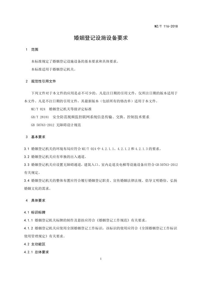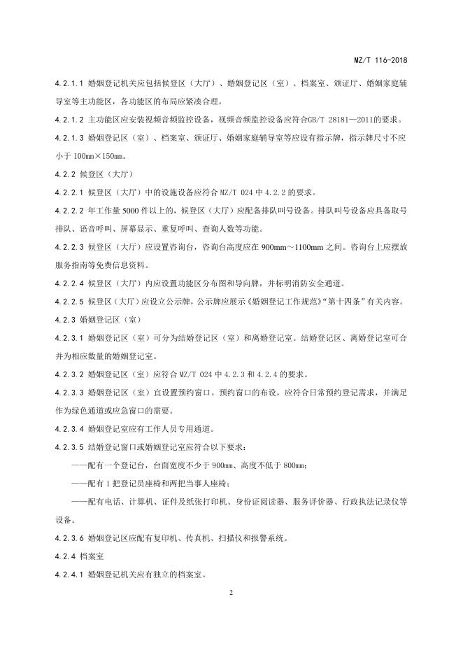 MZ/T 116-2018 婚姻登记设施设备要求