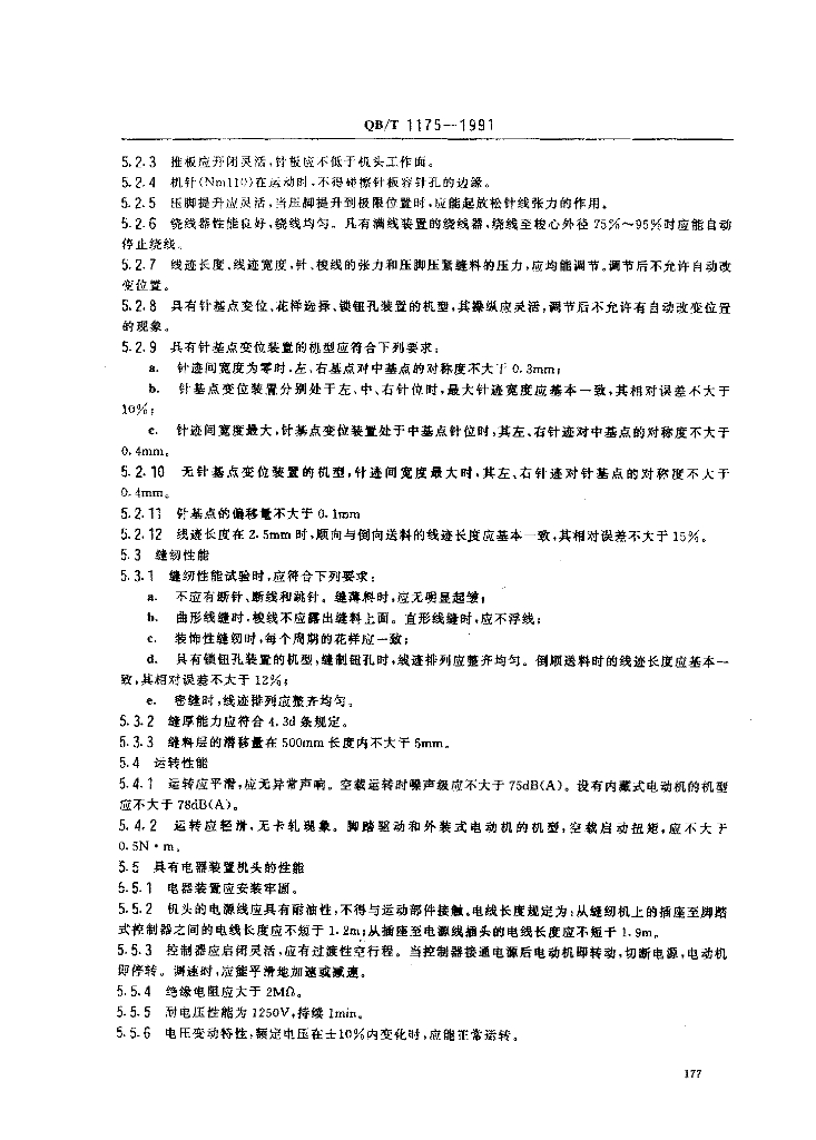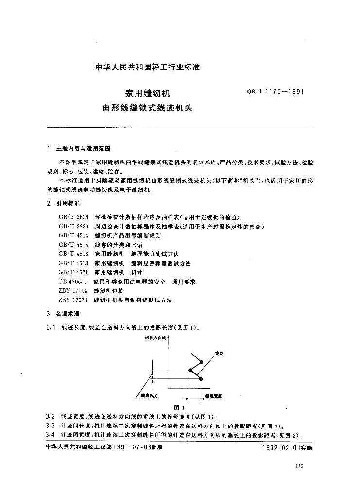 QB 1175-1991 家用缝纫机 曲形线缝锁式线迹机头