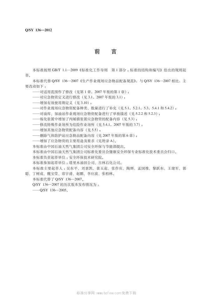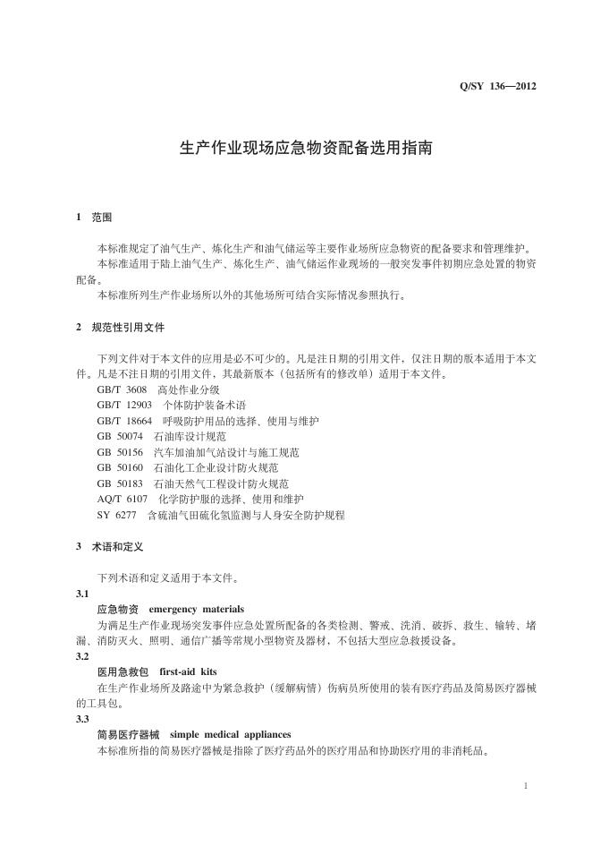 Q/SY 136-2012 生产作业现场应急物资配备选用指南