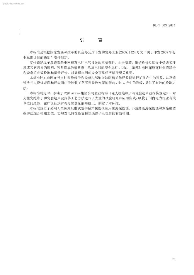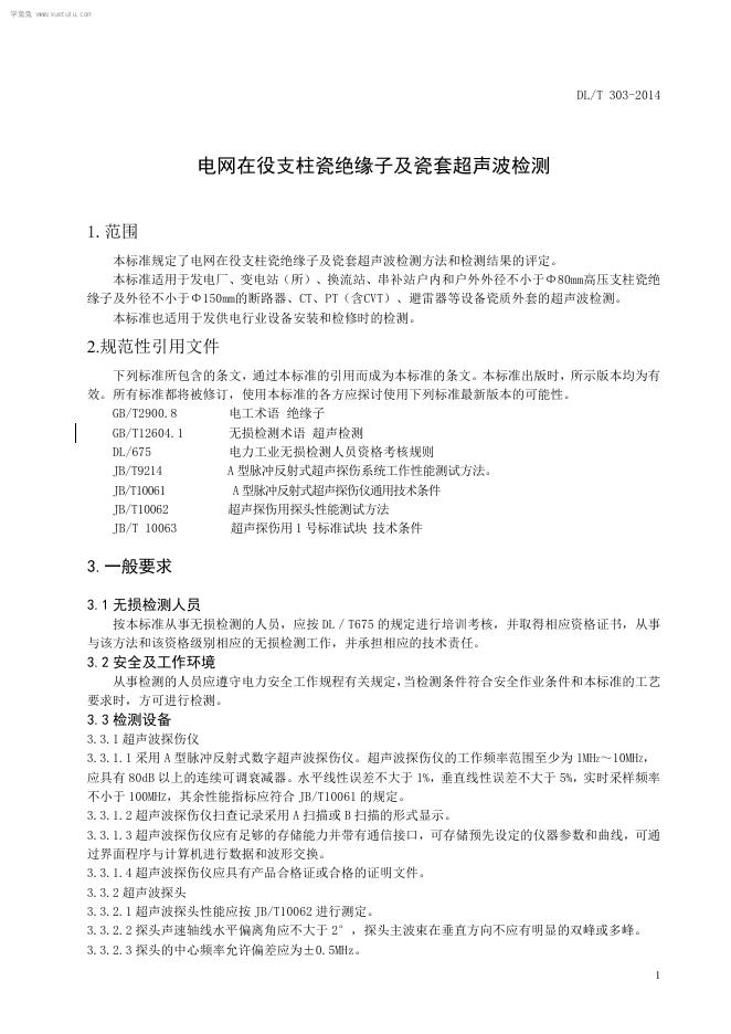 DL/T 303-2014 支柱绝缘子及瓷套超声波检测规程