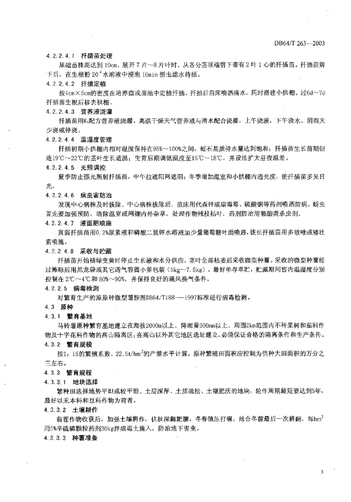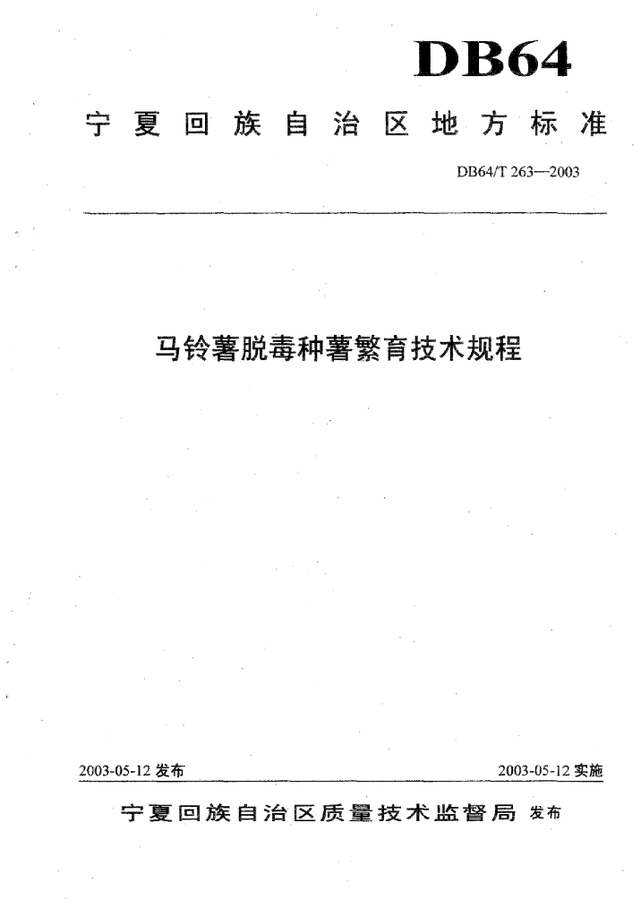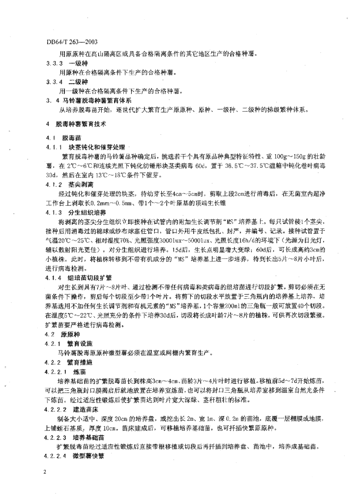 DB64/T 263-2003 马铃薯脱毒种薯繁育技术规程