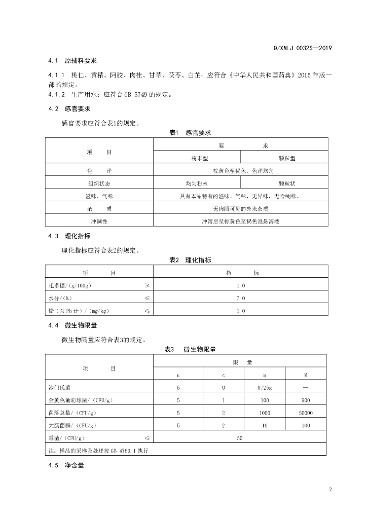 Q/XMLJ 0032S-2019 桃仁黄精固体饮料