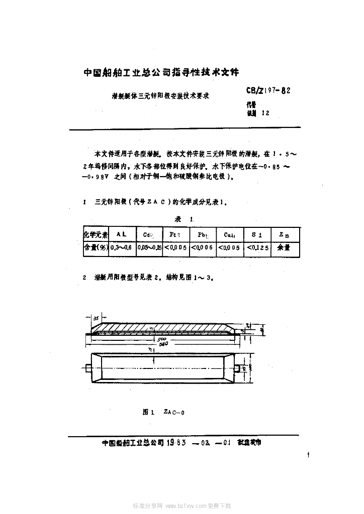 CB/Z 197-1982 潜艇艇体三元锌阳极安装技术要求
