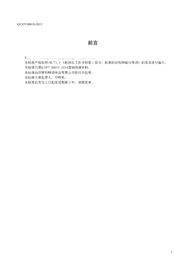 Q/LFT 0001S-2015 济南利峰调味品有限公司 黄焖鸡调味料