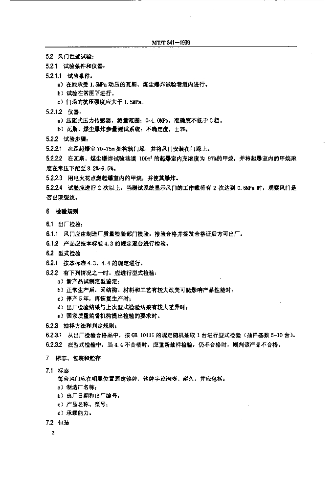 MT/T 841-1999 钢制薄壳反向风门技术条件