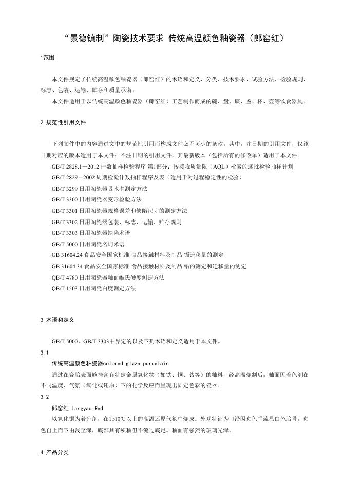 T/JDZCA 0017-2025 “景德镇制”陶瓷技术要求 传统高温颜色釉瓷器(郎窑红)