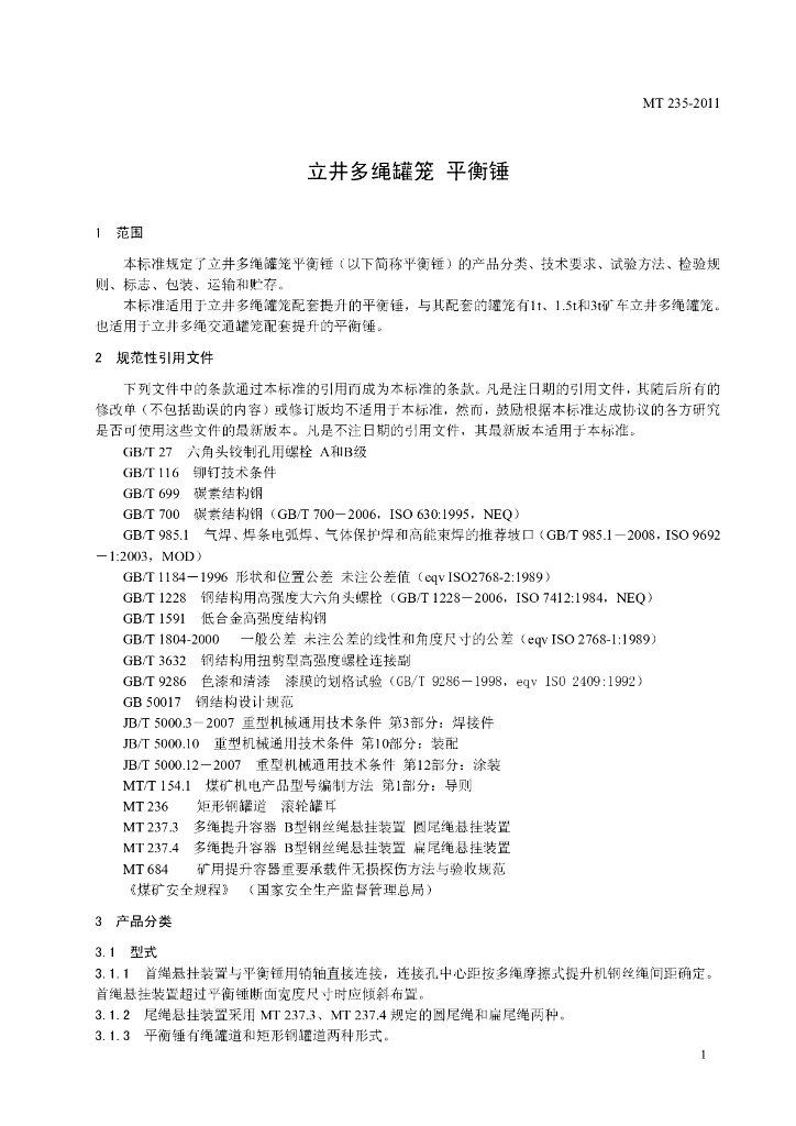 MT 235-2011 立井多绳罐笼 平衡锤