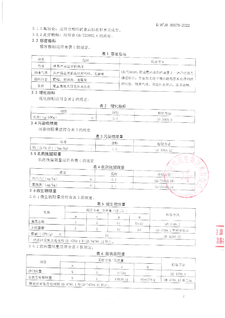 Q/AFJX 0057S-2022 黑加仑果汁粉(固体饮料)