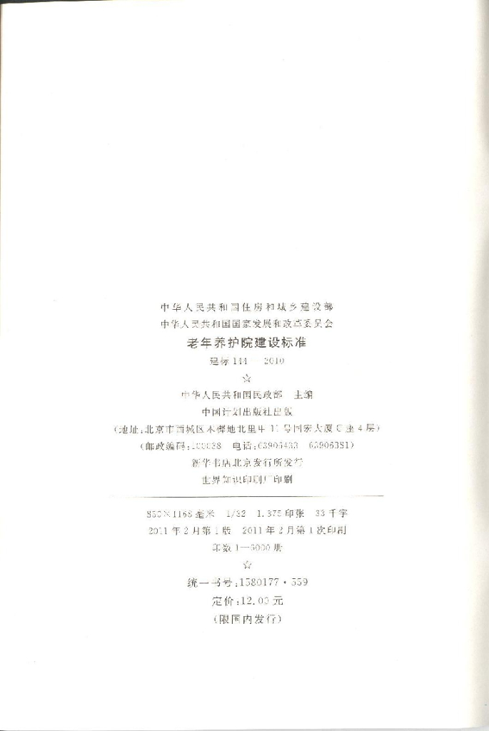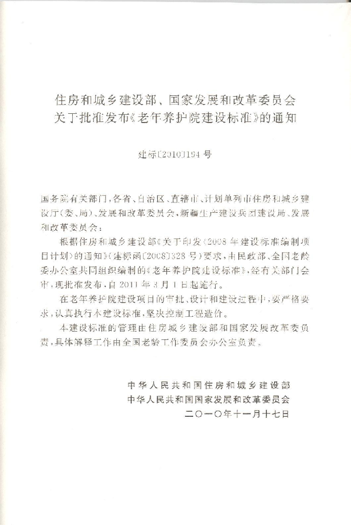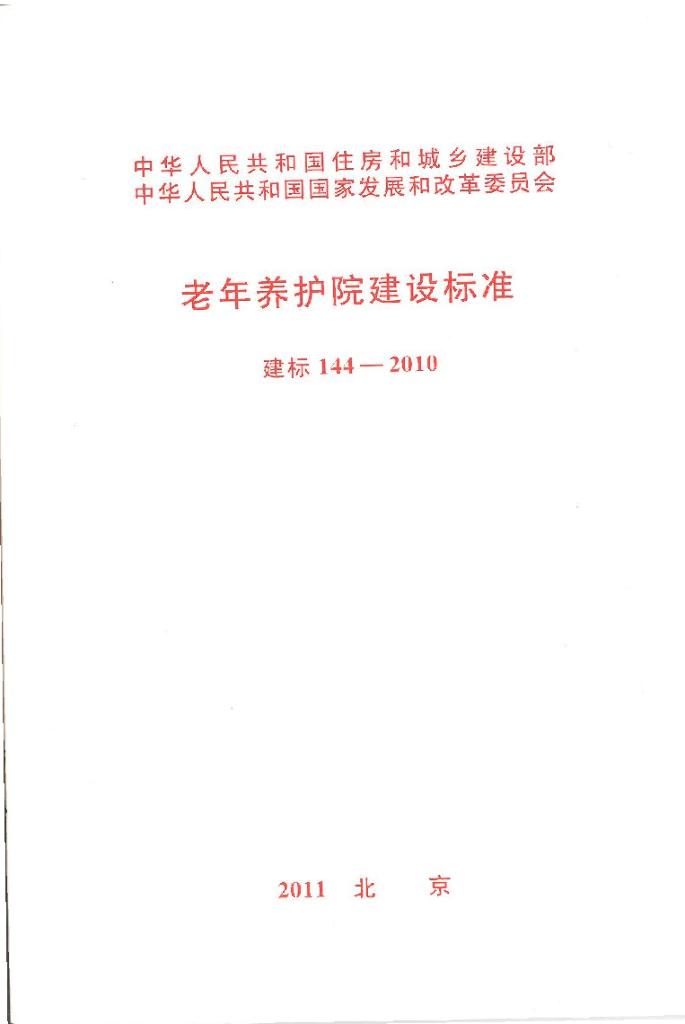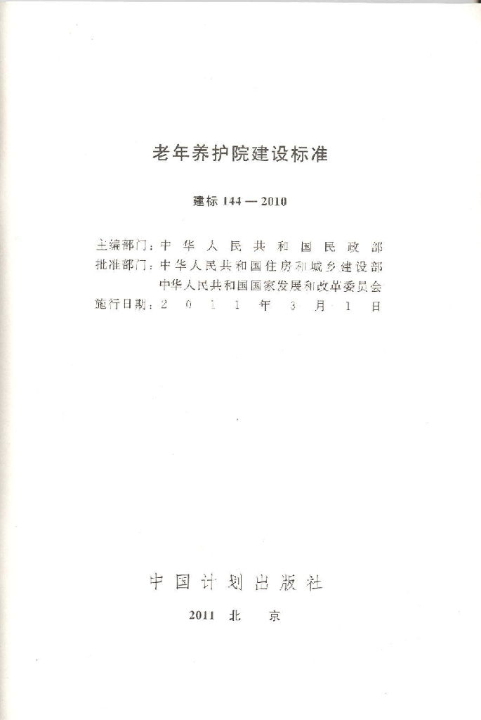 建标 144-2010 老年养护院建设标准