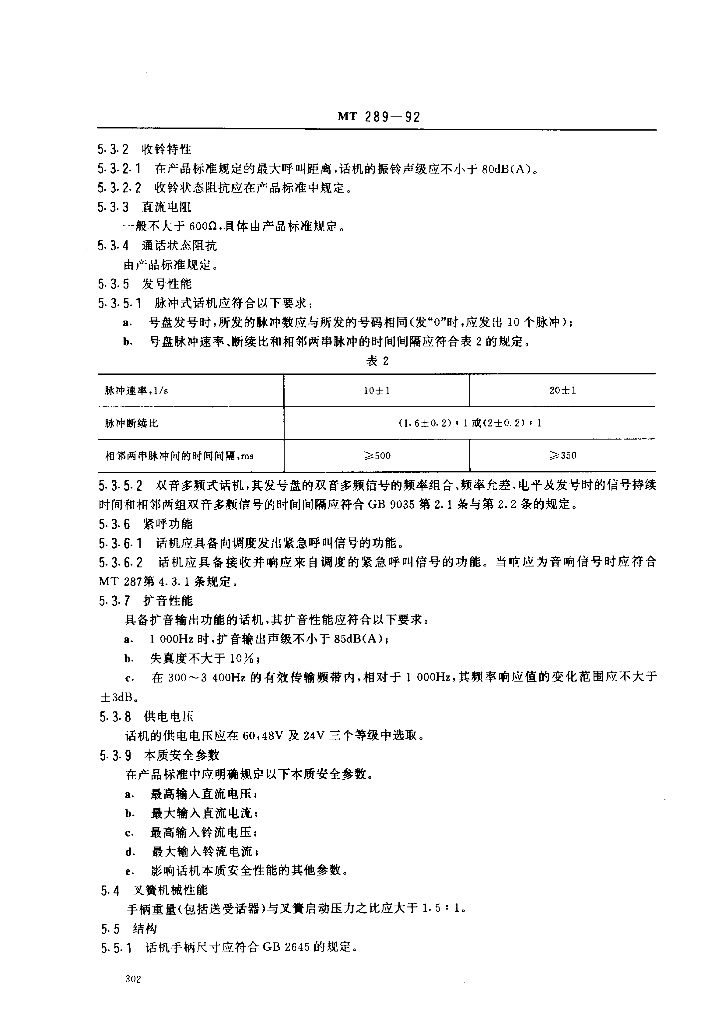 MT 289-1992 煤矿本质安全型共电、自动电话机通用技术条件
