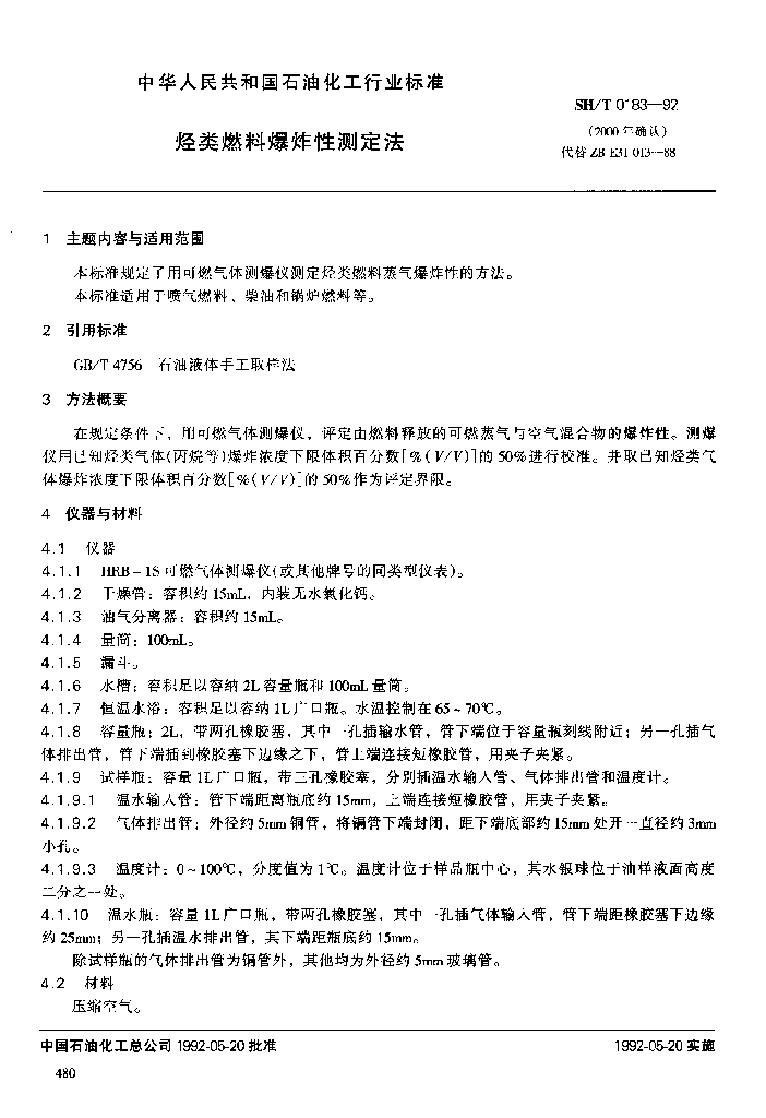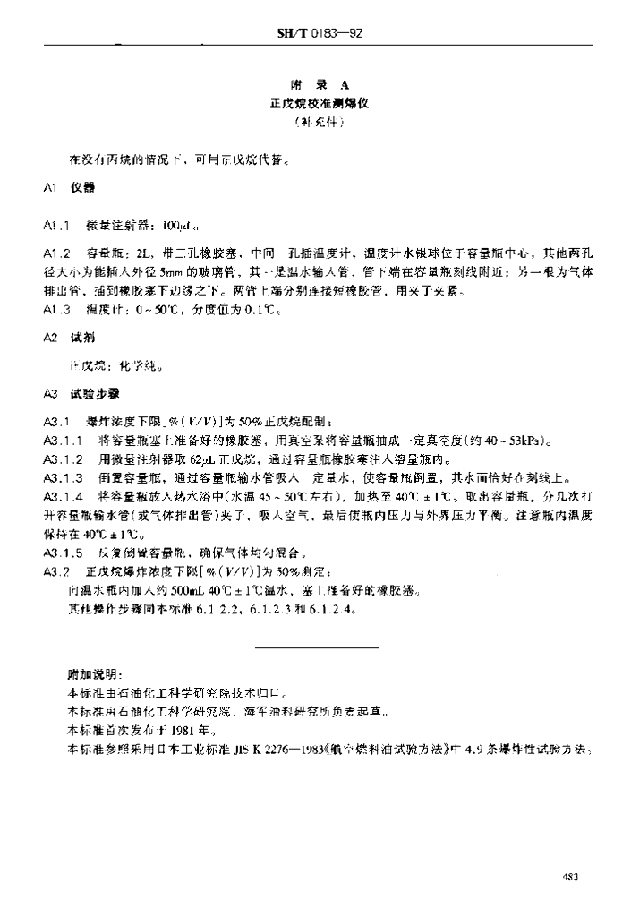 SH/T 0183-1992 烃类燃料爆炸性测定法