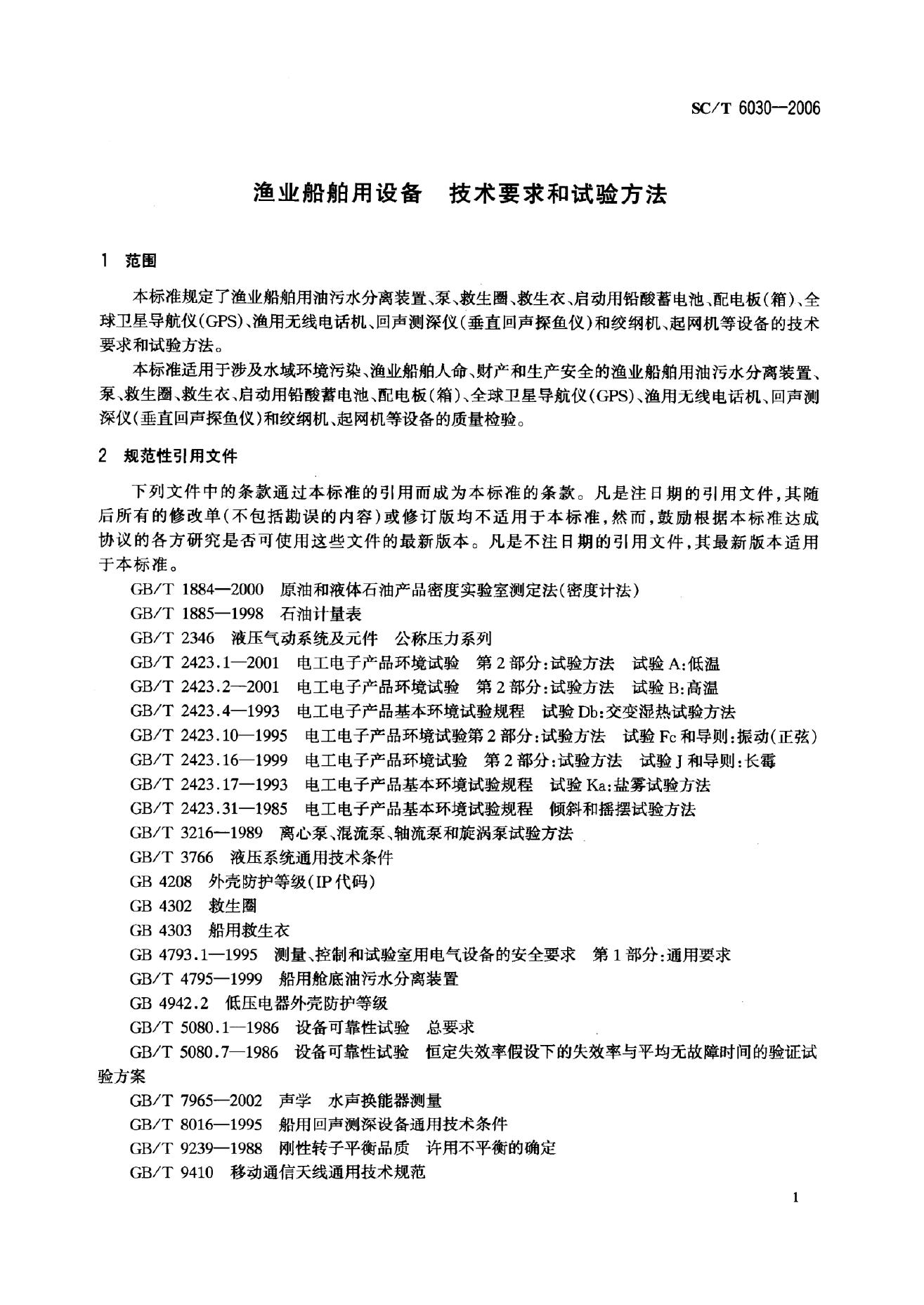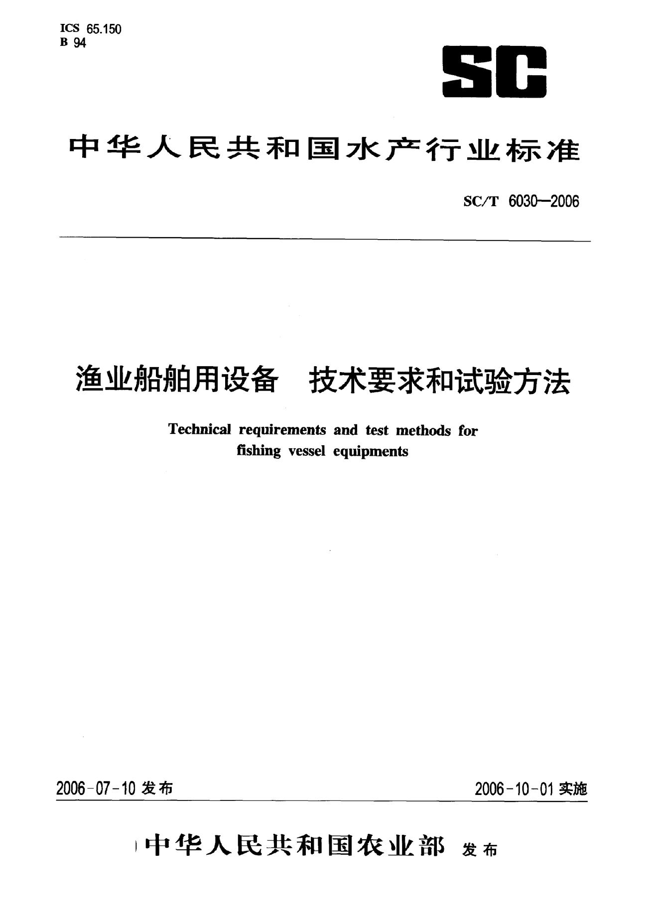 SC/T 6030-2006 渔业船舶用设备技术要求和试验方法