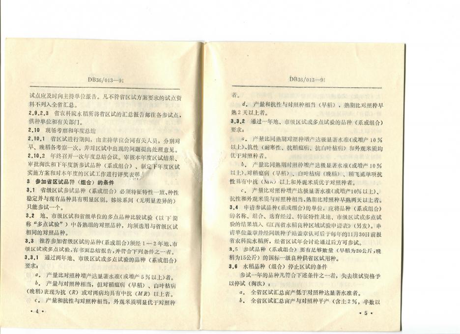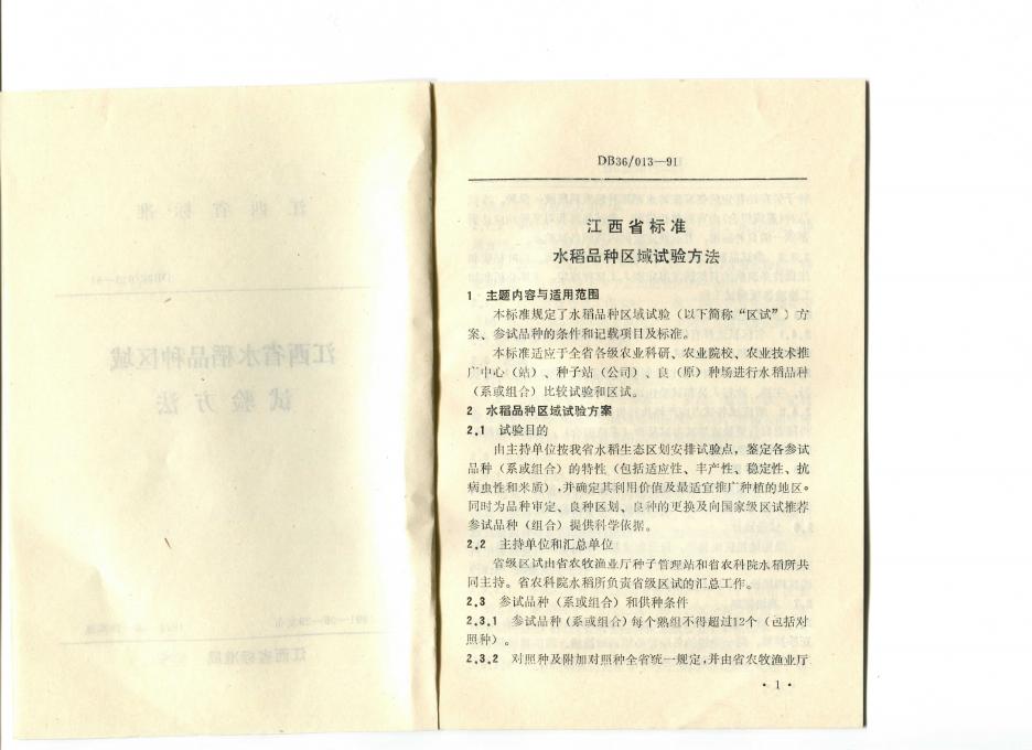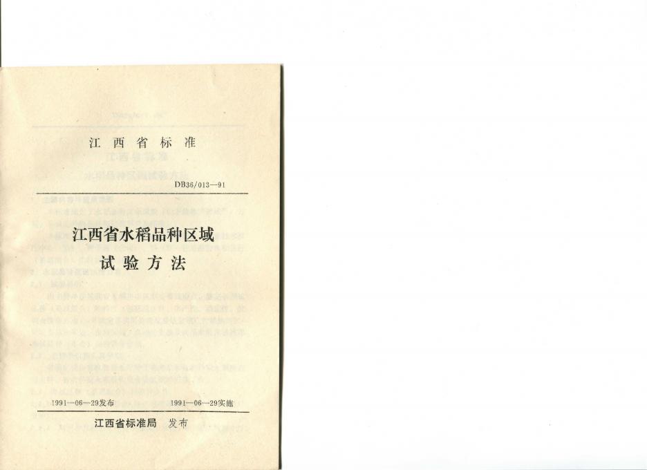 DB36/T 013-1991 江西省水稻品种区域试验方法