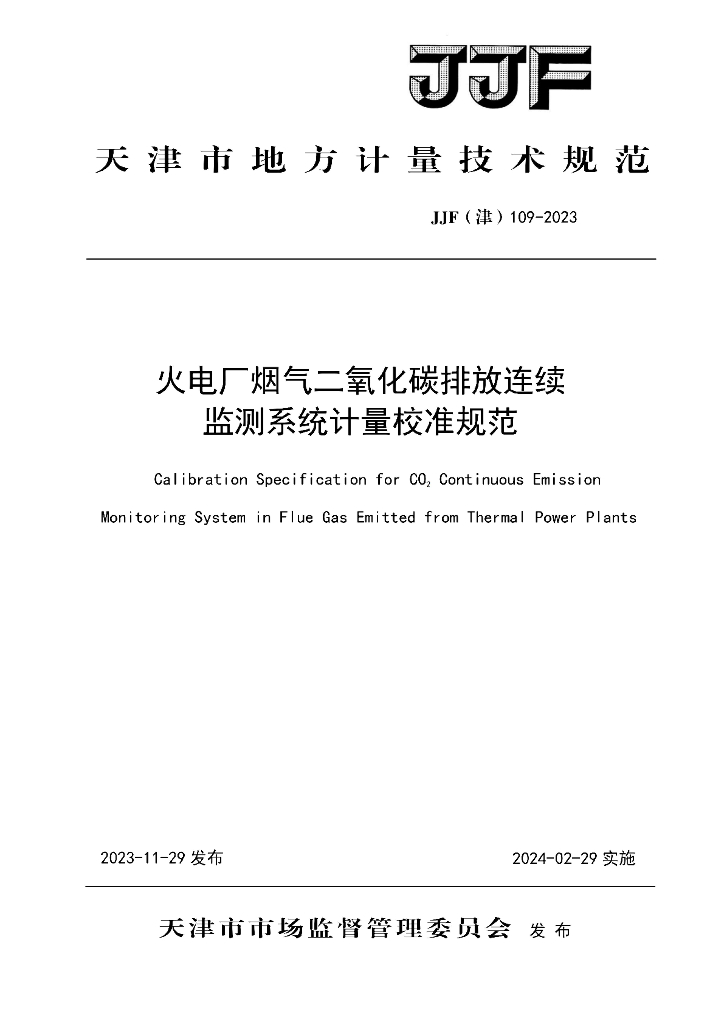 JJF(津)109-2023 火电厂烟气二氧化碳排放连续监测系统计量校准规范