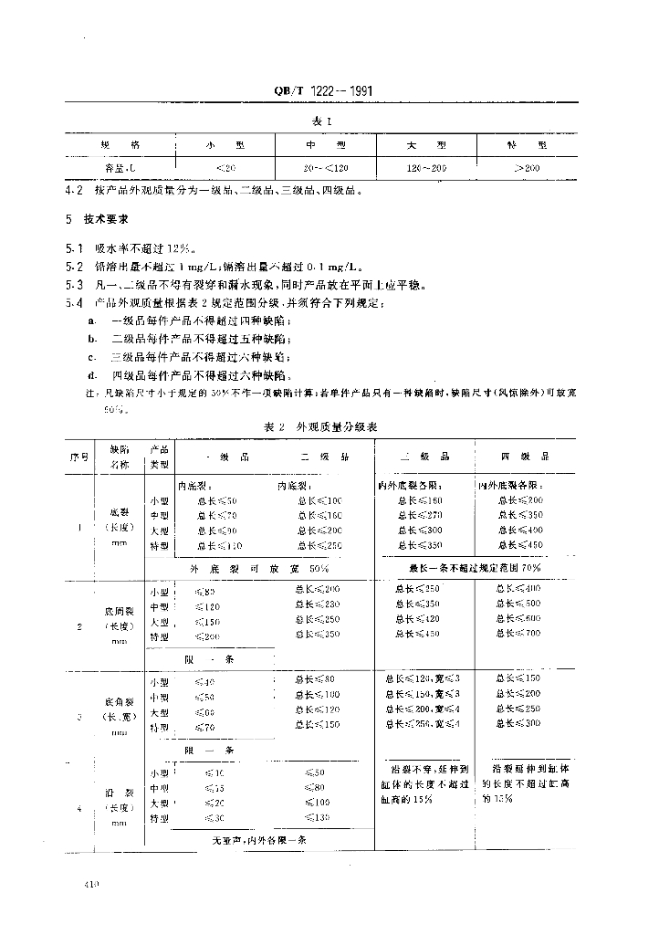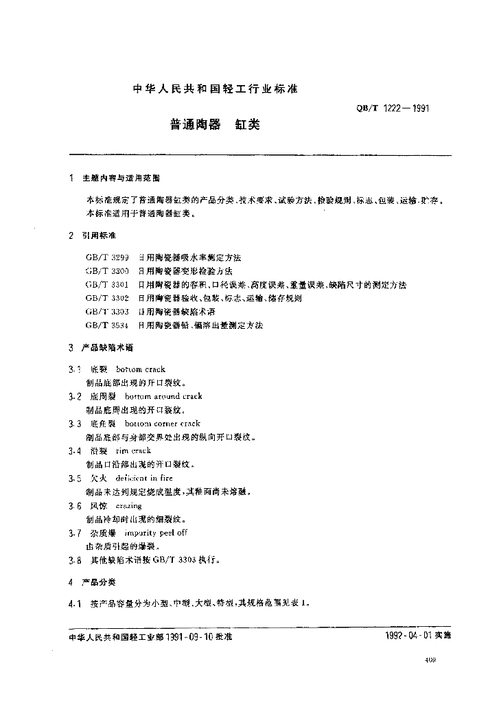 QB/T 1222-1991 普通陶器 缸类