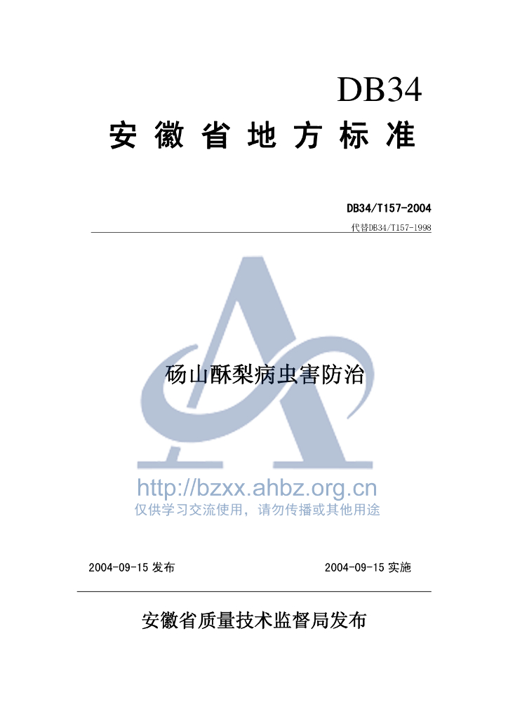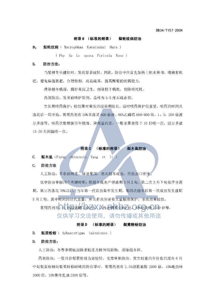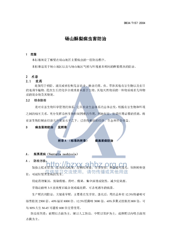 DB34/T 157-2004 砀山酥梨病虫害防治