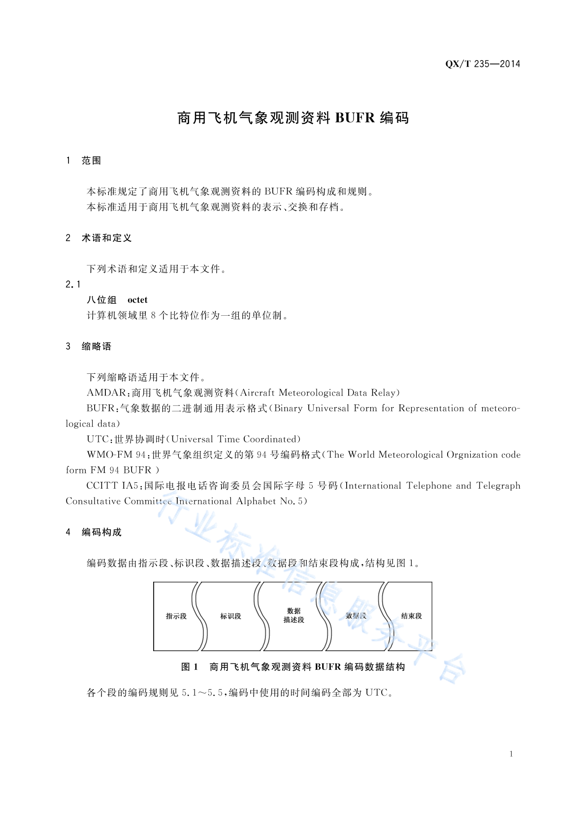 QX/T 235-2014 商用飞机气象观测资料BUFR编码
