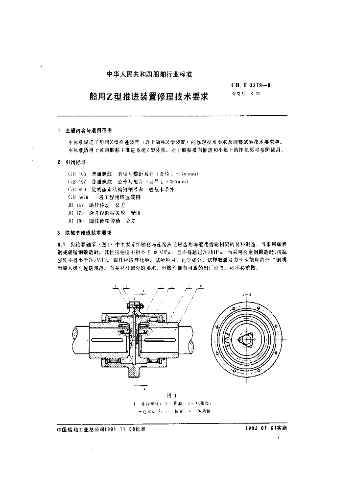 CB/T 3379-1991 船用Z型推进装置修理技术要求