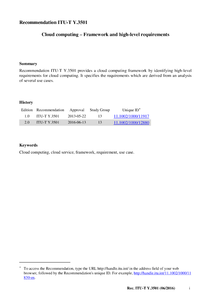 ITU-T Y.3501-2016 云计算框架和高级要求