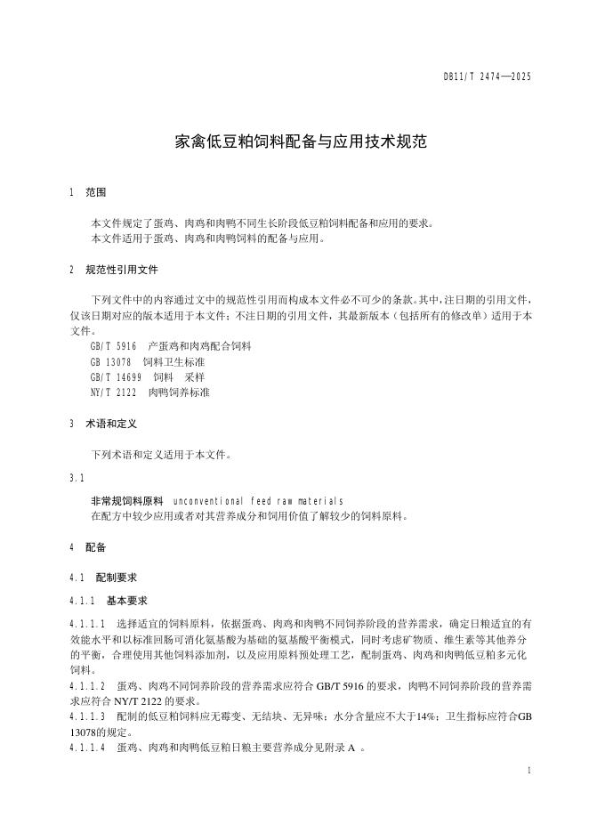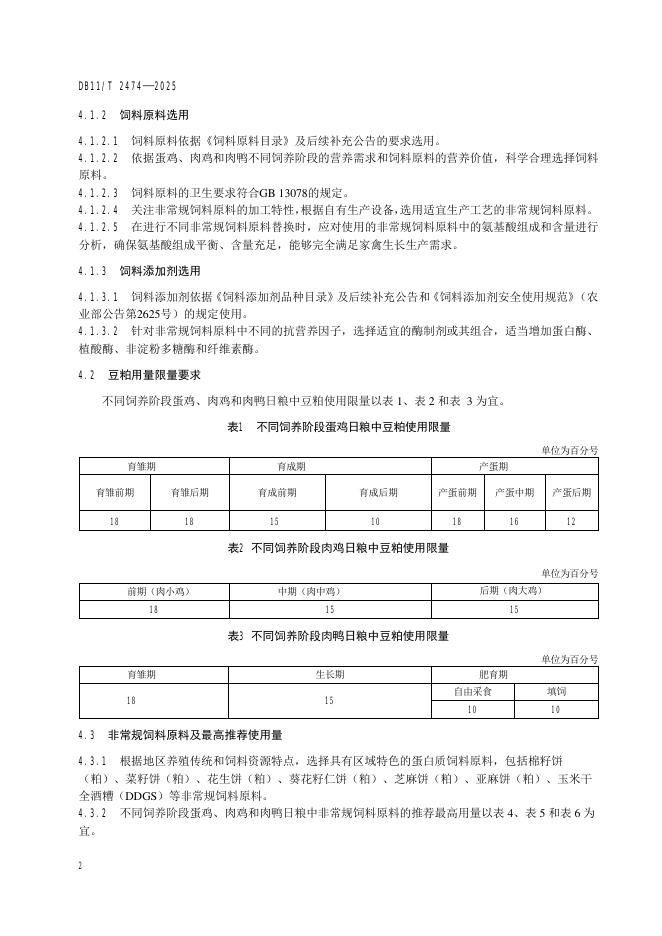 DB11/T 2474-2025 家禽低豆粕饲料配备与应用技术规范