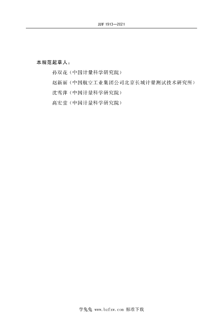 孙双花(中国计量科学研究院)、赵新丽(中国航空工业集团公司北京长城计量测试技术研究所)、沈雪萍(中国计量科学研究院)、高宏堂(中国计量科学研究院)